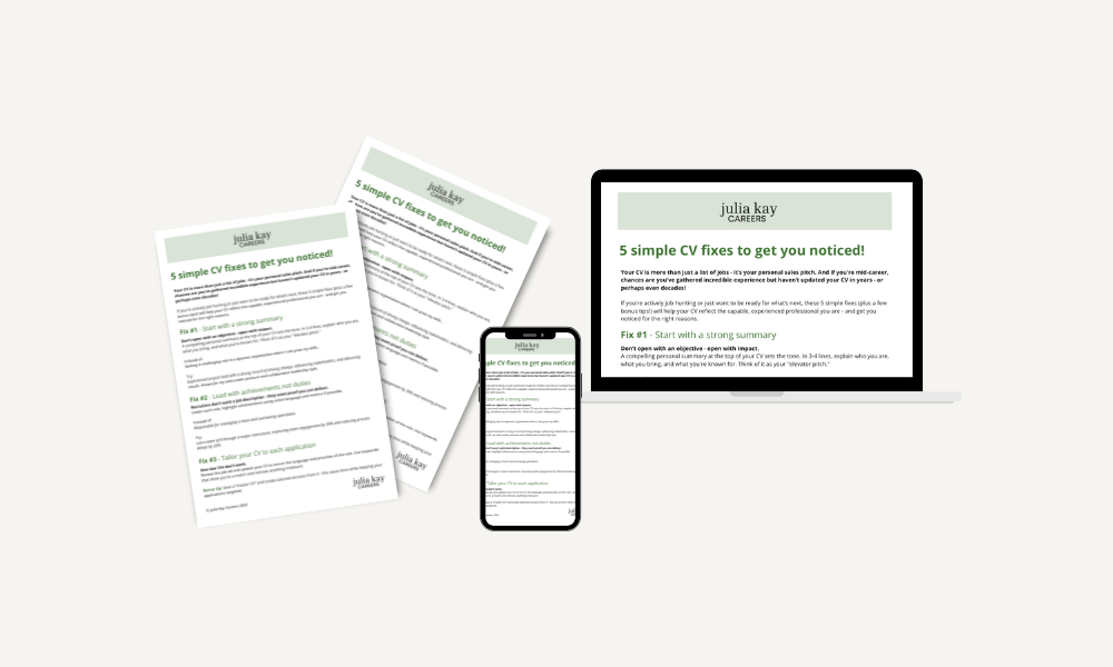 Get my free info sheet with my 5 simple CV fixes to get you noticed!